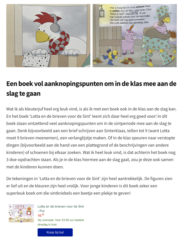 Een leuke recensie van ‘Lotta en de brieven van de Sint’
